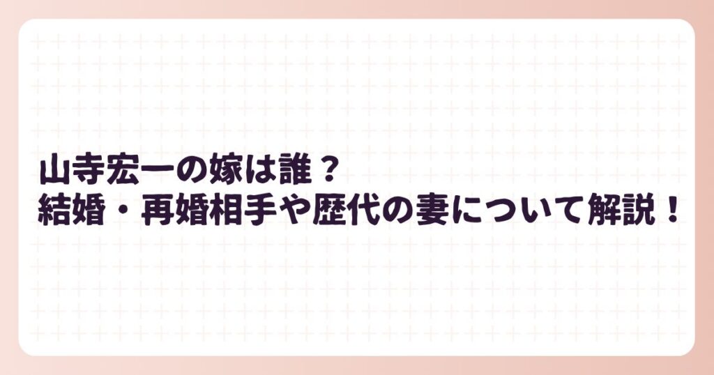 「七色の声を持つ男」として知られる声優の山寺宏一さん。 数々のアニメやゲームで活躍し、その演技力は業界でも高く評価されています。 そんな山寺宏一さんですが、現在の嫁は誰なのでしょうか? そこで今回は、山寺宏一さんの嫁は誰なのか、結婚・再婚相... -