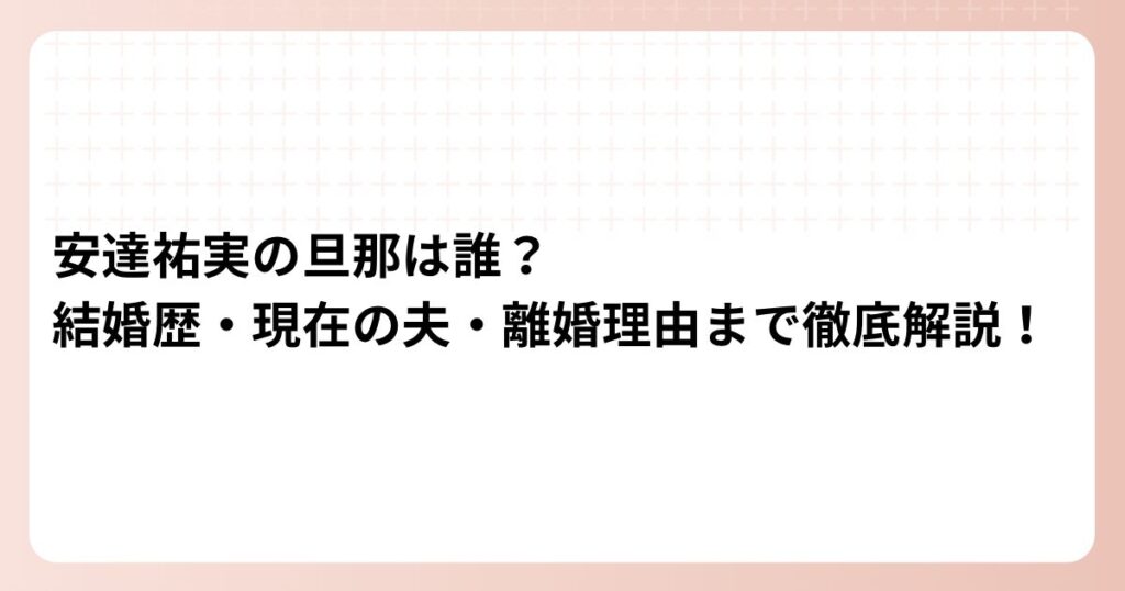 安達祐実の旦那は誰?結婚歴・現在の夫・離婚理由まで徹底解説!
