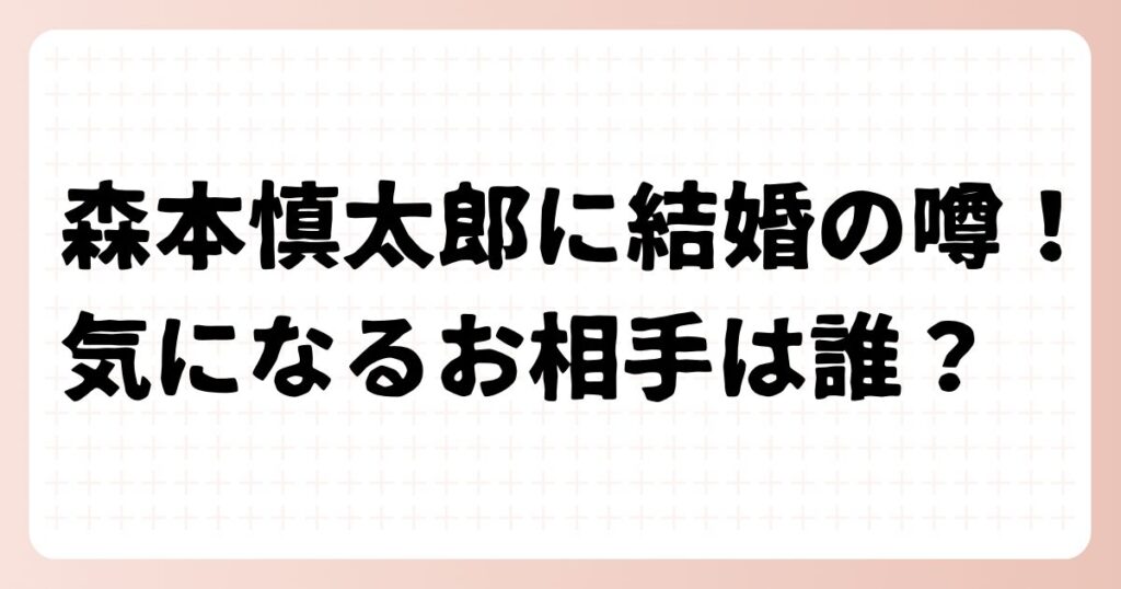 SixTONESのメンバーとして活躍する森本慎太郎さん。 そんな森本慎太郎さんですが、結婚の噂が浮上しているようです。 果たして森本慎太郎さんは結婚するのでしょうか。 今回は、森本慎太郎さんの結婚の噂や気になるお相手について詳しく解説していきます。... -