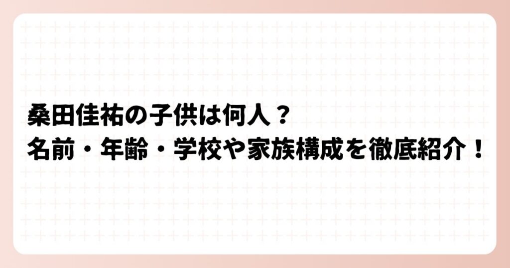 サザンオールスターズのボーカルとして日本の音楽シーンを牽引し、数々のヒット曲を生み出してきた桑田佳祐さん。 「TSUNAMI」や「真夏の果実」など、世代を超えて愛される名曲を数多く残しています。 そんな桑田佳祐さんですが、子供は何人いるのでしょう... -