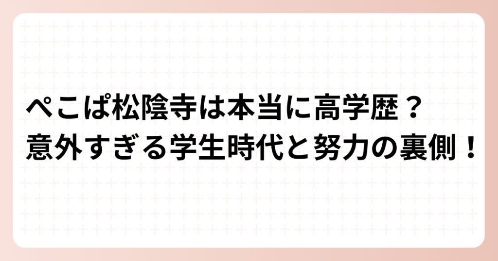 ぺこぱ松陰寺は本当に高学歴?意外すぎる学生時代と努力の裏側!