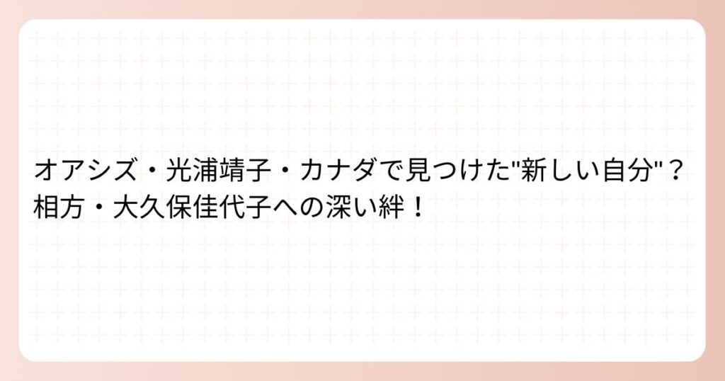 才能豊かで多彩な活動を展開する光浦靖子さん。 そんな光浦靖子さんですが、カナダ留学を経て新たな一面を見せているのでしょうか? 光浦靖子さんのカナダでの新たな挑戦と、相方・大久保佳代子さんとの絆について詳しく見ていきましょう。 オアシズ・光浦... -