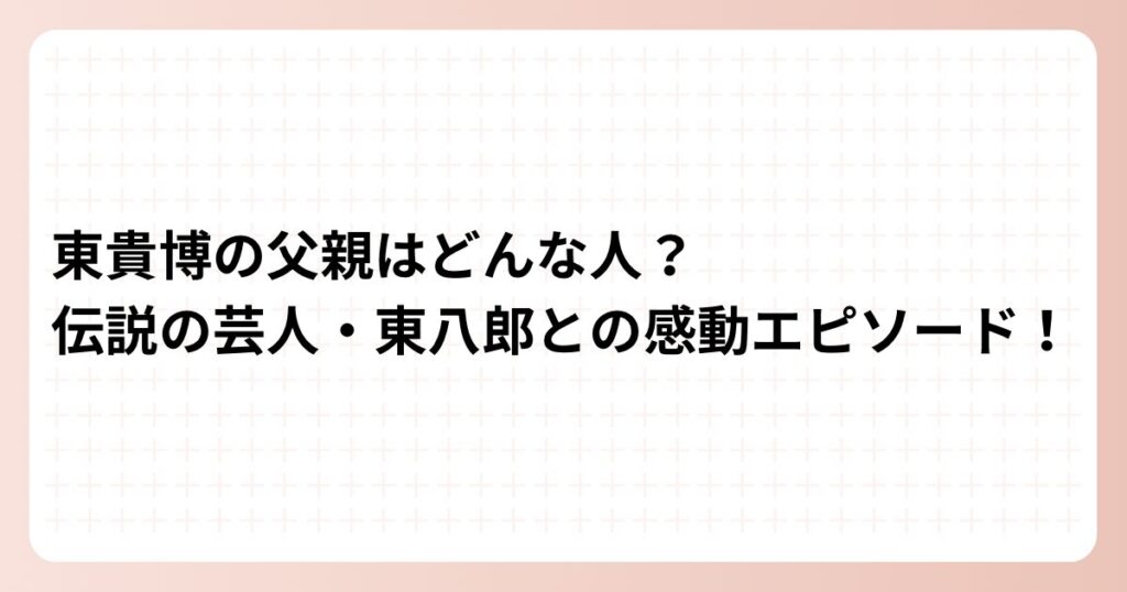 東貴博の父親はどんな人?伝説の芸人・東八郎との感動エピソード!