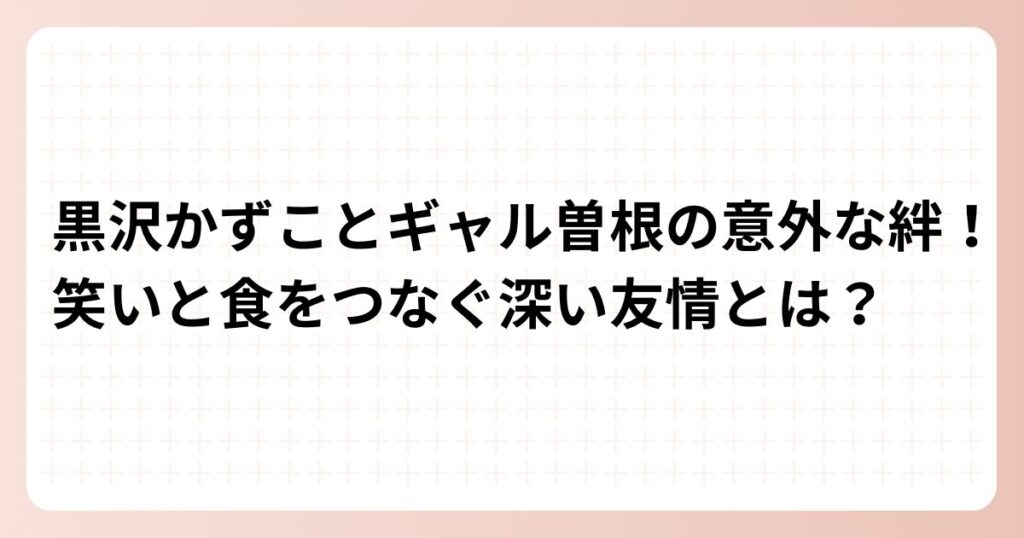 黒沢かずことギャル曽根の意外な絆!笑いと食をつなぐ深い友情とは?