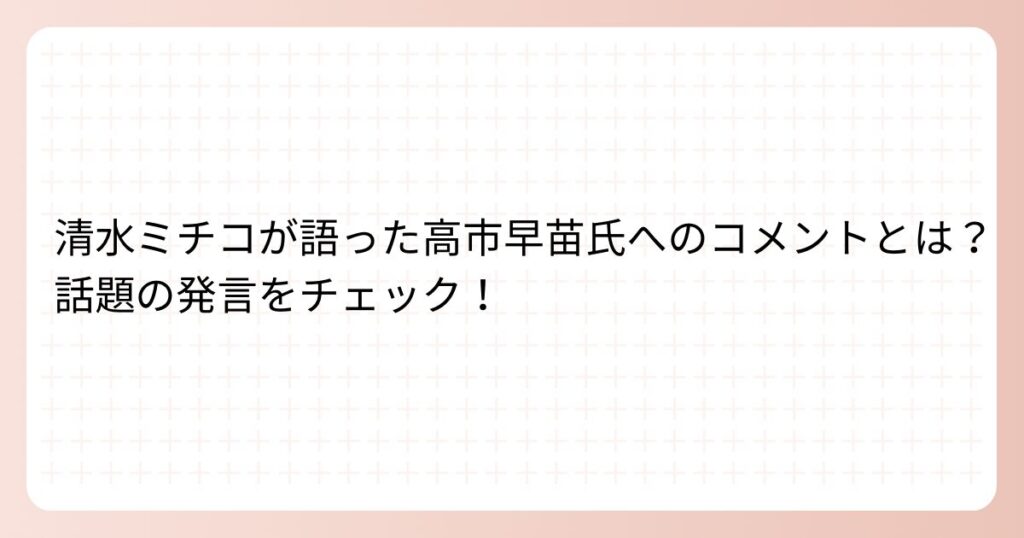 ものまねの女王として知られる清水ミチコさん。 そんな清水ミチコさんですが、高市早苗さんへのコメントで話題を呼んでいるのでしょうか? 清水ミチコさんが語った高市早苗さんへのコメントについて、詳しく見ていきましょう。 清水ミチコの高市早苗物まね... -
