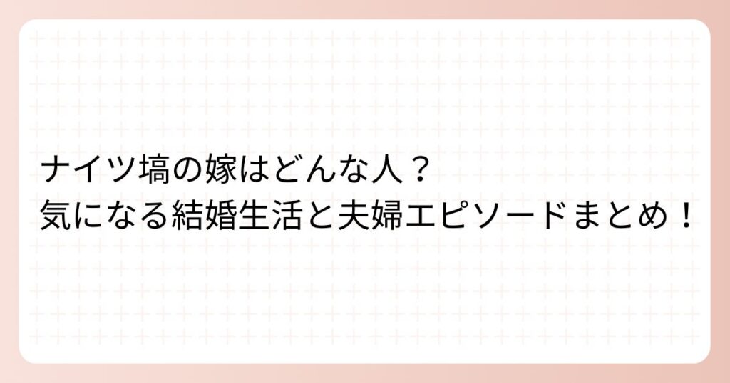 ナイツ塙の嫁はどんな人?気になる結婚生活と夫婦エピソードまとめ!