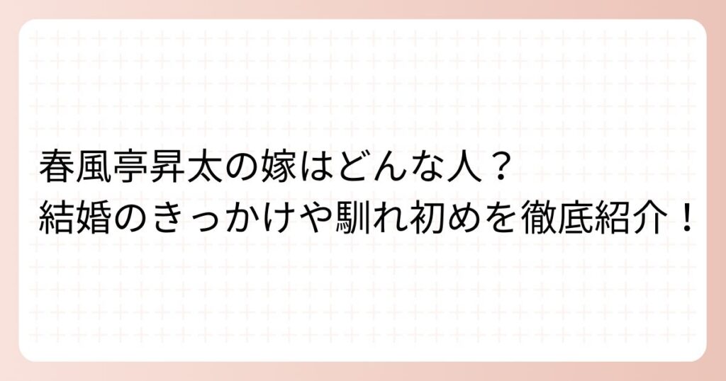 落語家として、また『笑点』の司会者として人気を集める春風亭昇太さん。 そんな春風亭昇太さんですが、お嫁さんはどのような方なのでしょうか? 春風亭昇太さんのお嫁さんについて、結婚のきっかけや馴れ初めを詳しく見ていきましょう。 春風亭昇太の嫁は... -