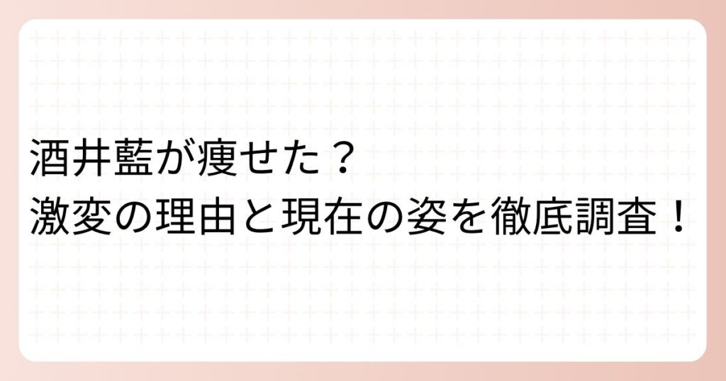 愛嬌たっぷりの芸風で人気を集める酒井藍さん。 そんな酒井さんですが、最近「痩せた?」と話題になっているようですね。 果たして本当に痩せたのでしょうか? 今回は、酒井藍さんの体重の推移や「痩せた?」と言われる理由、そして体型維持の背景について... -