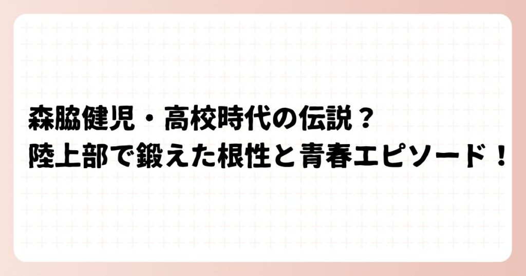 森脇健児・高校時代の伝説?陸上部で鍛えた根性と青春エピソード!