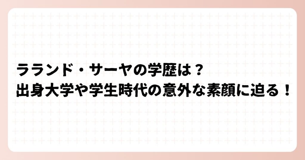 独特の世界観と抜群の演技力で人気を集めるラランド・サーヤさん。 そんなサーヤさんですが、どのような学歴を持ち、学生時代をどのように過ごしていたのでしょうか? サーヤさんの出身大学や学生時代の意外な素顔について、詳しく調べてみました。 ララン... -