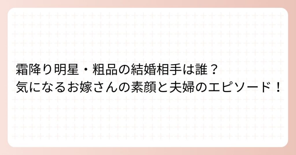 天才的なギャグセンスで人気を集める霜降り明星の粗品さん。 そんな粗品さんですが、結婚相手はどのような方なのでしょうか? 粗品さんの結婚相手の素顔や、夫婦のエピソードについて詳しく調べてみました。 霜降り明星・粗品の結婚相手は誰?元タレントの... -