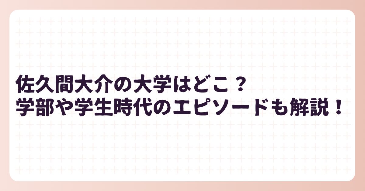 この記事では、佐久間大介さんの大学や学部、そして学生時代のエピソードについて詳しく解説していきます。
