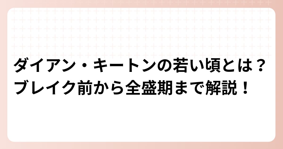 今回は、ダイアン・キートンさんの若い頃について、ブレイク前の姿から全盛期の活躍まで詳しくお伝えしていきます!