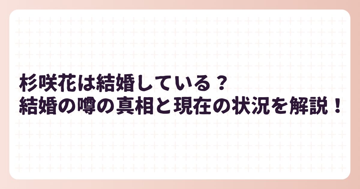 この記事では、杉咲花さんの結婚に関する噂の真相と現在の状況について、詳しく解説していきます。