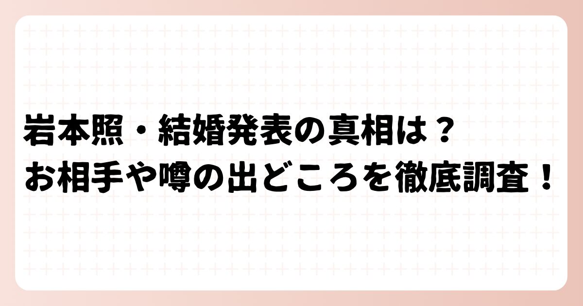 今回は、岩本照さんの結婚に関する噂や、その真相について詳しく見ていきましょう。