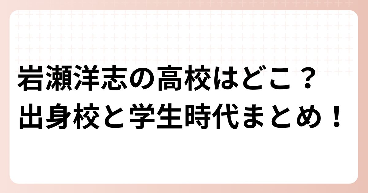 そんな岩瀬洋志さんの出身高校はどこなのでしょうか。