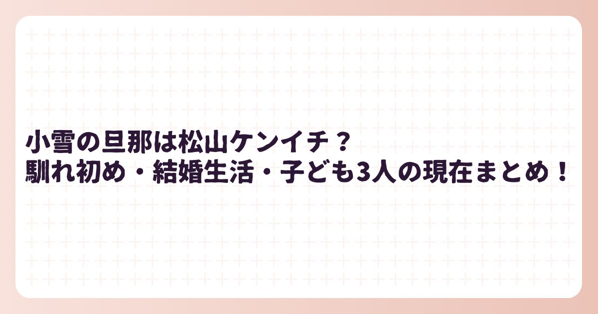 今回は小雪さんの旦那について、馴れ初め・結婚生活・子ども3人の現在をまとめてきました。