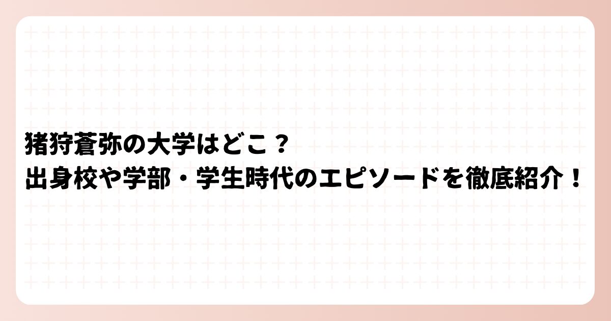 猪狩蒼弥の大学はどこ?出身校や学部・学生時代のエピソードを徹底紹介!