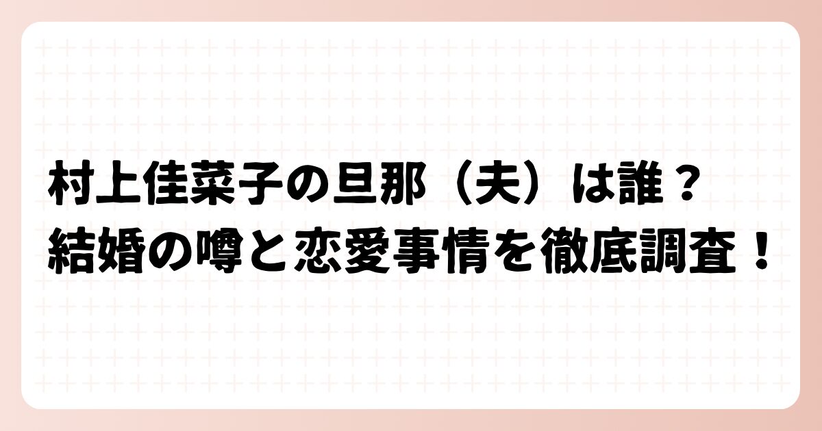 明るく親しみやすいキャラクターで人気の村上佳菜子さんですが、旦那様は誰で、結婚の噂や恋愛事情はどうなっているのか気になりますよね。