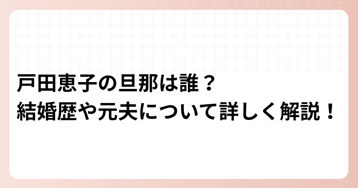 結論から言うと、戸田恵子さんは現在独身で旦那さんはいません。