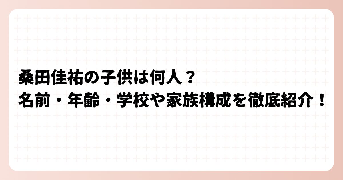 桑田佳祐さんの家族構成は、妻は原由子さんで、長男の祐宜さんはミュージシャンとして活動、次男の洋輔さんは一般人として生活しています。