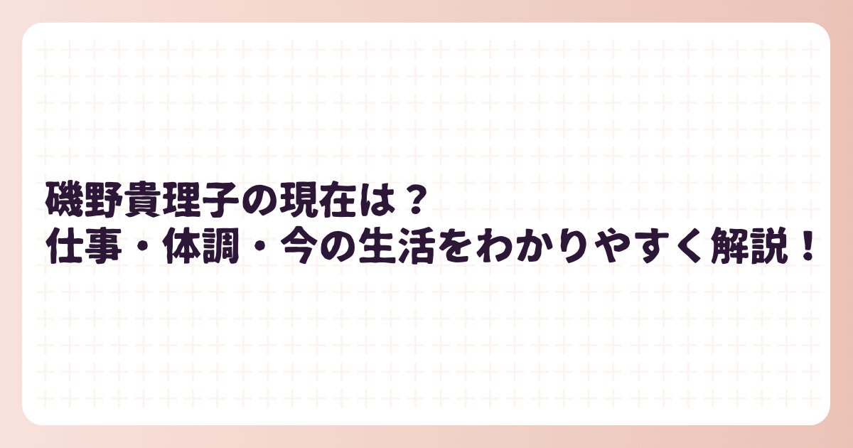 そこで今回は、磯野貴理子さんの現在の仕事・体調・今の生活についてわかりやすく解説していきます!