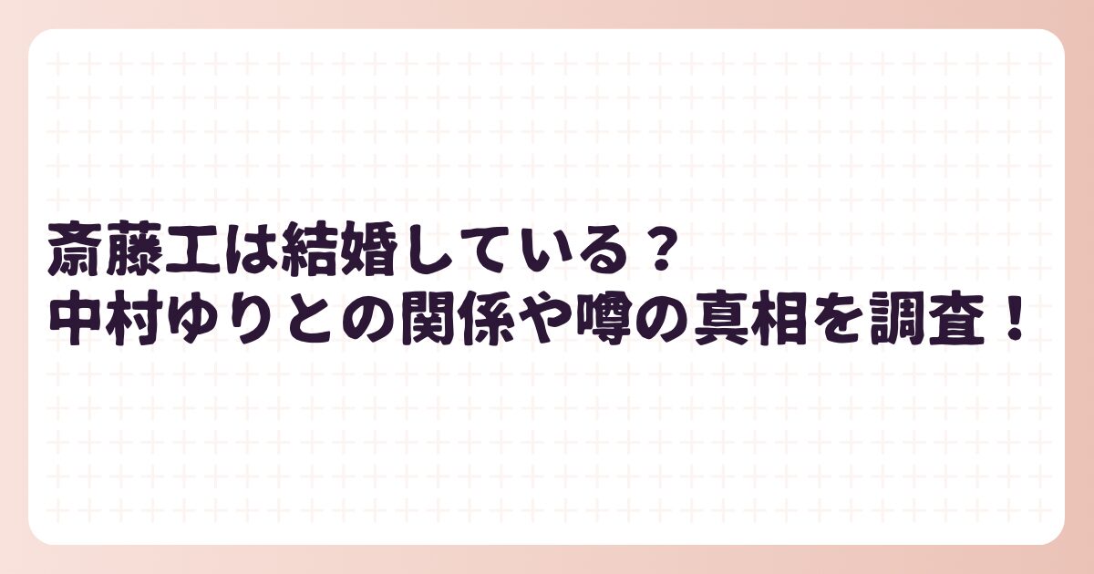 斎藤工さんと中村ゆりさんの結婚に関する公式な事実は一切なく、所属事務所や二人から交際・結婚を認める発表は皆無です。