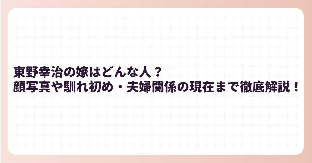 そんな東野幸治さんの「お嫁さんはどんな人なのか?」と気になっている方も多いのではないでしょうか。