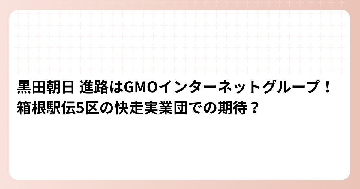 黒田朝日選手の進路は、GMOインターネットグループ株式会社の実業団陸上部に内定しており、2026年4月1日に入社予定です。