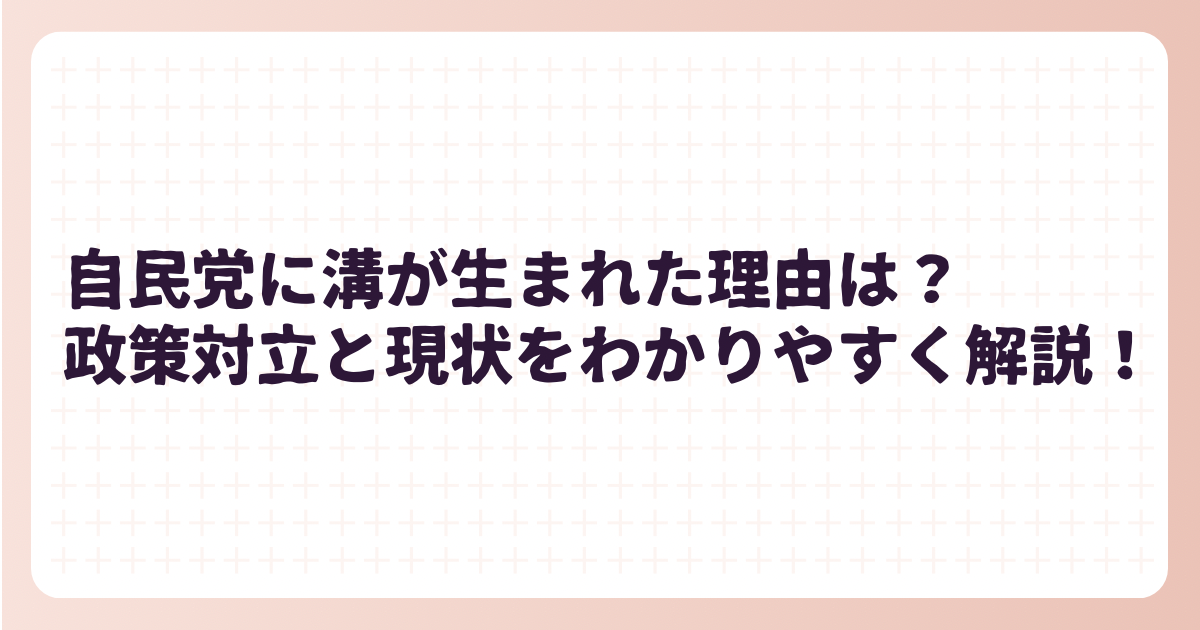 最近、「自民党に溝がある」というニュースを目にして、不安や疑問を感じている方も多いのではないでしょうか。