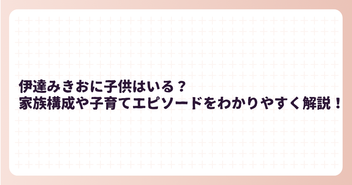 本記事では、伊達みきおさんの家族構成や子供のプロフィール、さらに心温まる子育てエピソードについて詳しく解説します。