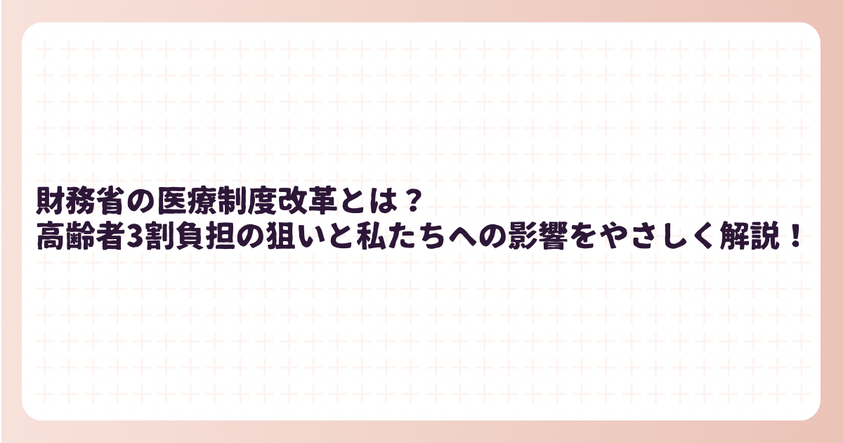 財務省の医療制度改革とは?高齢者3割負担の狙いと私たちへの影響をやさしく解説!