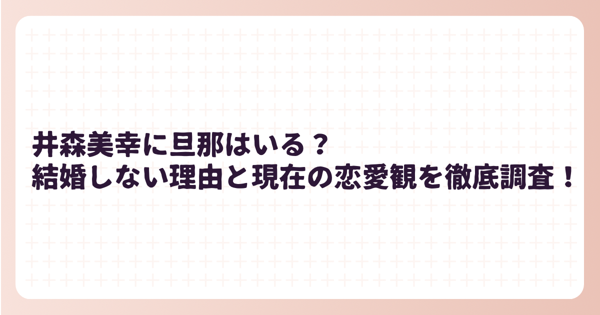 この記事では、井森美幸さんに旦那がいるのか、結婚しない理由、そして現在の恋愛観について徹底調査しました!