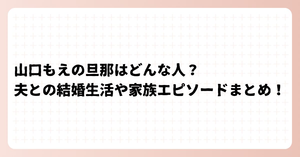明るく親しみやすいキャラクターで人気の山口もえさんですが、旦那様はどんな人で、どのような結婚生活や家族エピソードがあるのか気になりますよね。