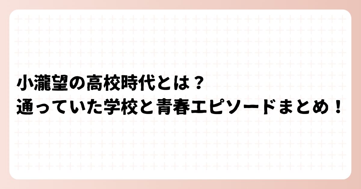 今回は、小瀧望さんの高校時代について、通っていた学校や青春エピソードを詳しく解説していきます。