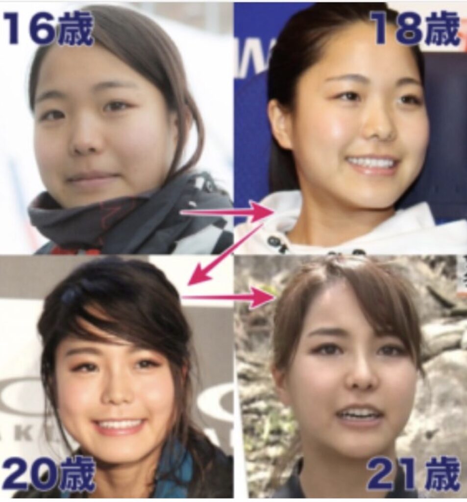 高梨沙羅さんの顔立ちが変わったポイントは、輪郭、目元、鼻筋の3つでした。