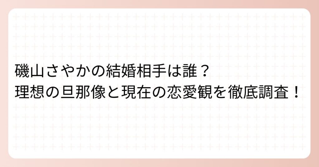 グラビアアイドルと女優として人気を集める磯山さやかさん。 そんな磯山さやかさんですが、結婚相手はいるのでしょうか? 磯山さやかさんの結婚相手や理想の旦那像、現在の恋愛観について詳しく見ていきましょう。 磯山さやかの結婚相手は誰?現在の結婚状... -