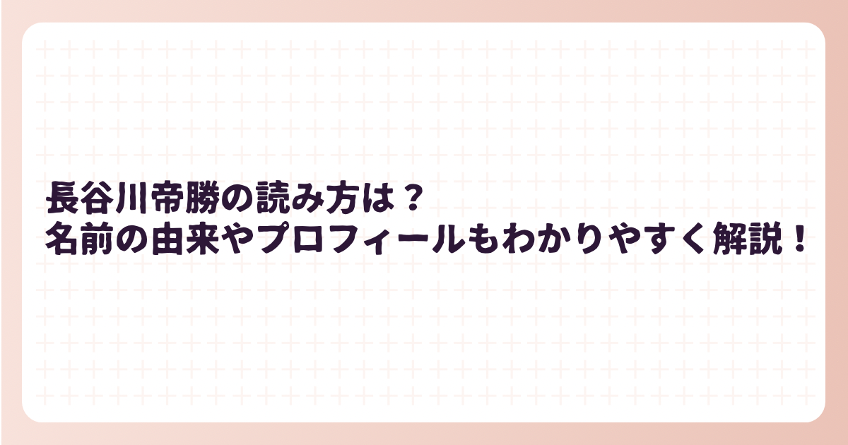 この記事では、長谷川帝勝さんの名前の正しい読み方や由来、そしてプロフィールについてわかりやすく解説していきます!