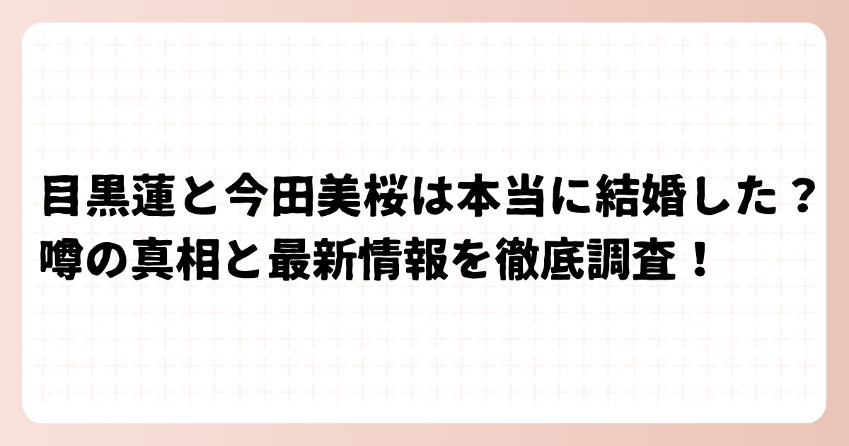 目黒蓮さんと今田美桜さんの結婚説は、事実無根の噂であることが分かりました。