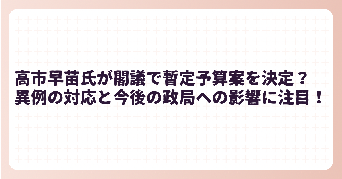 高市早苗首相による暫定予算案の閣議決定は、異例の対応として注目を集めています。