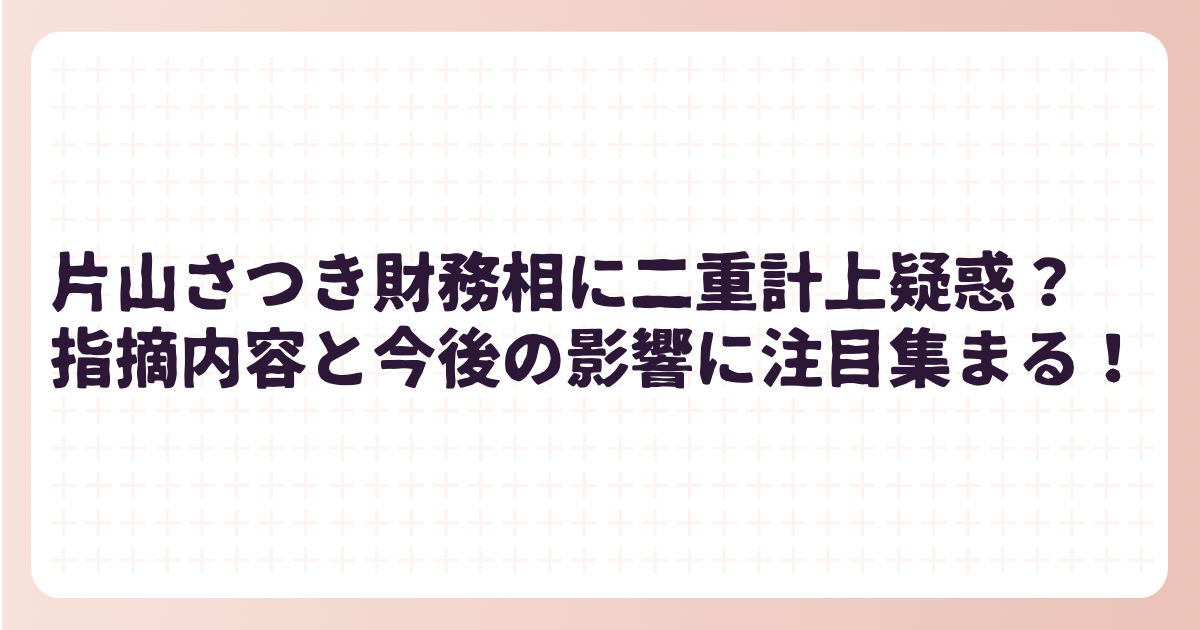 片山さつき財務相に浮上した二重計上疑惑は、政治資金の信頼性に関わる重要な問題です。