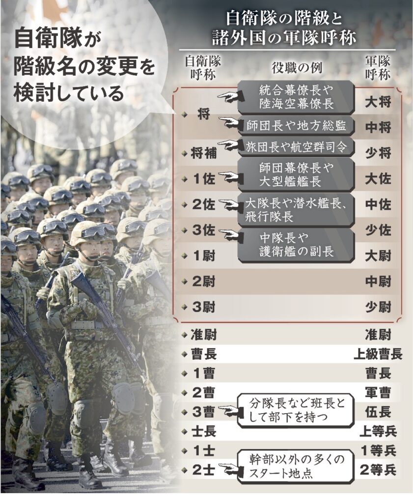 政府は自衛隊幹部の階級呼称を変更する方針を固めました。