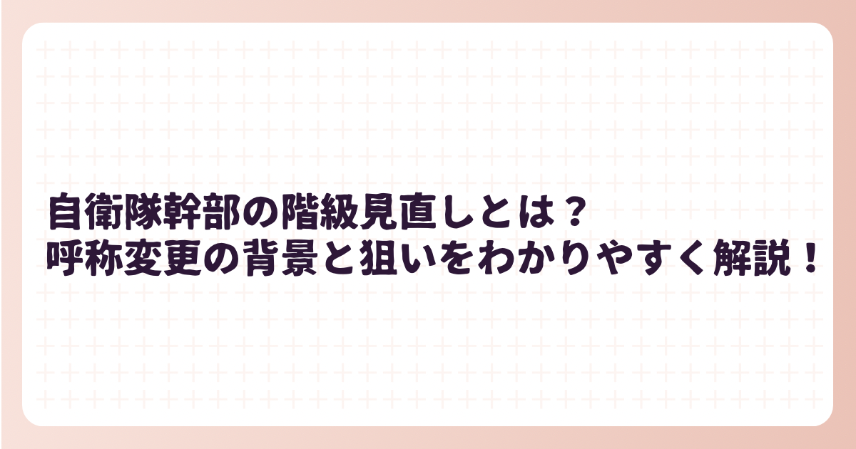 自衛隊幹部の階級見直しとは?呼称変更の背景と狙いをわかりやすく解説!