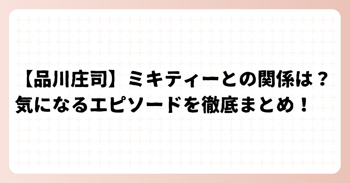今回は、品川庄司の庄司智春さんとミキティーとの関係について詳しく調べてみました!