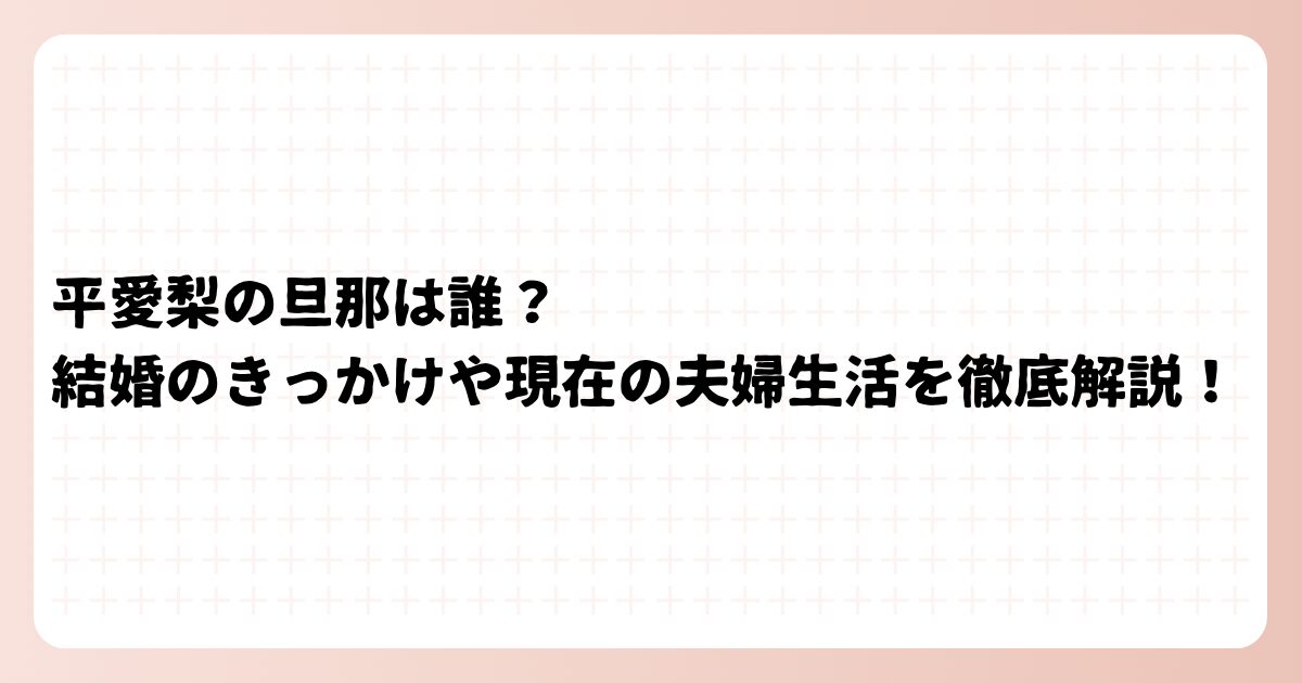 今回は、平愛梨さんの旦那さまについて、結婚のきっかけや現在の夫婦生活まで詳しくご紹介します。