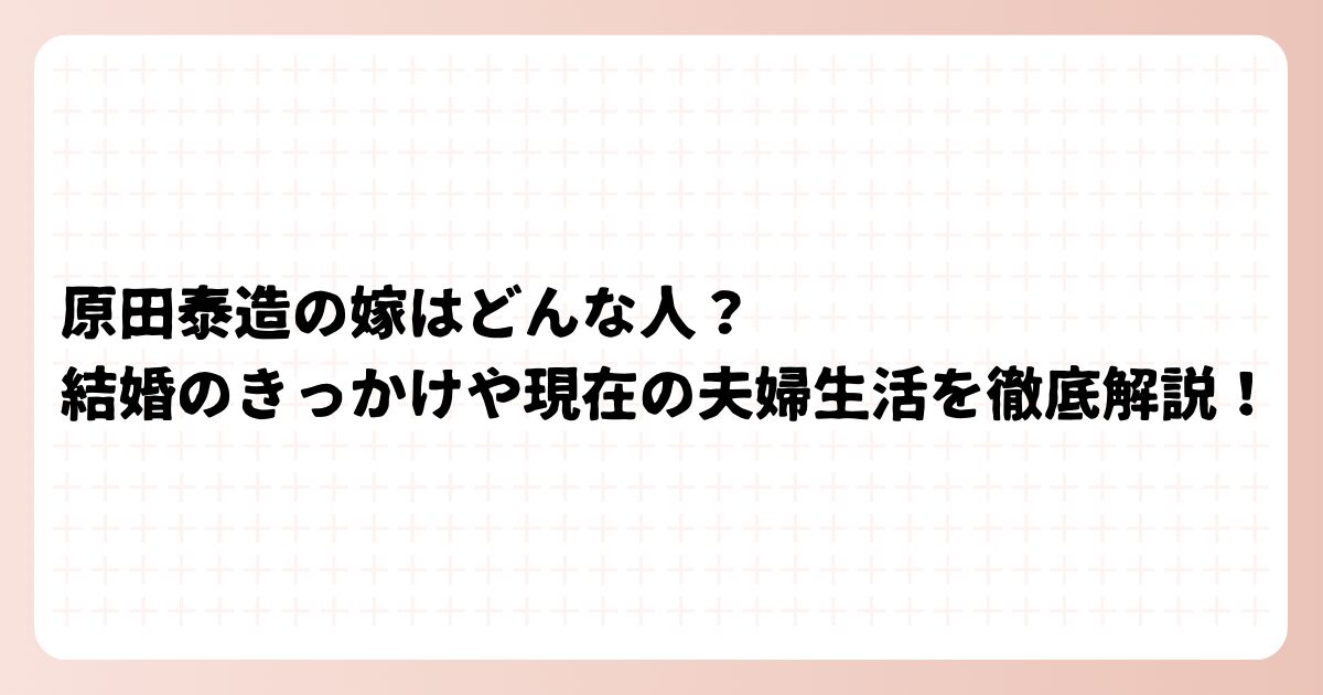 原田泰造さんのお嫁さんは、芸能人ではない一般の方でしたが、原田泰造さんを支え続ける強い女性だったようです。