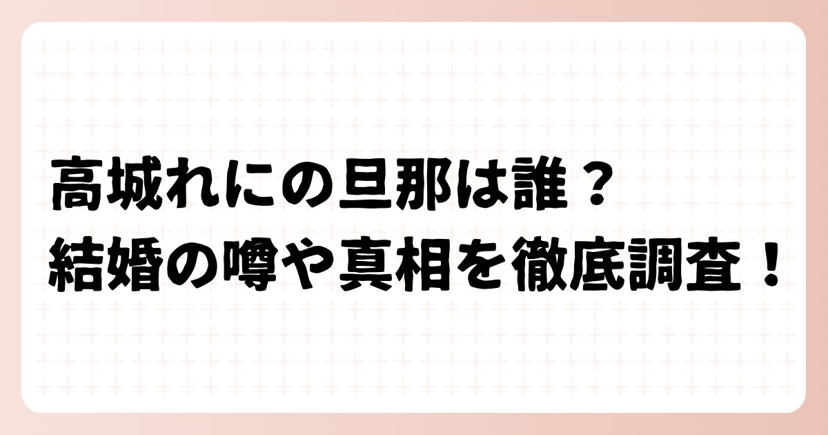 そんな高城れにさんの旦那様は誰なのでしょうか。