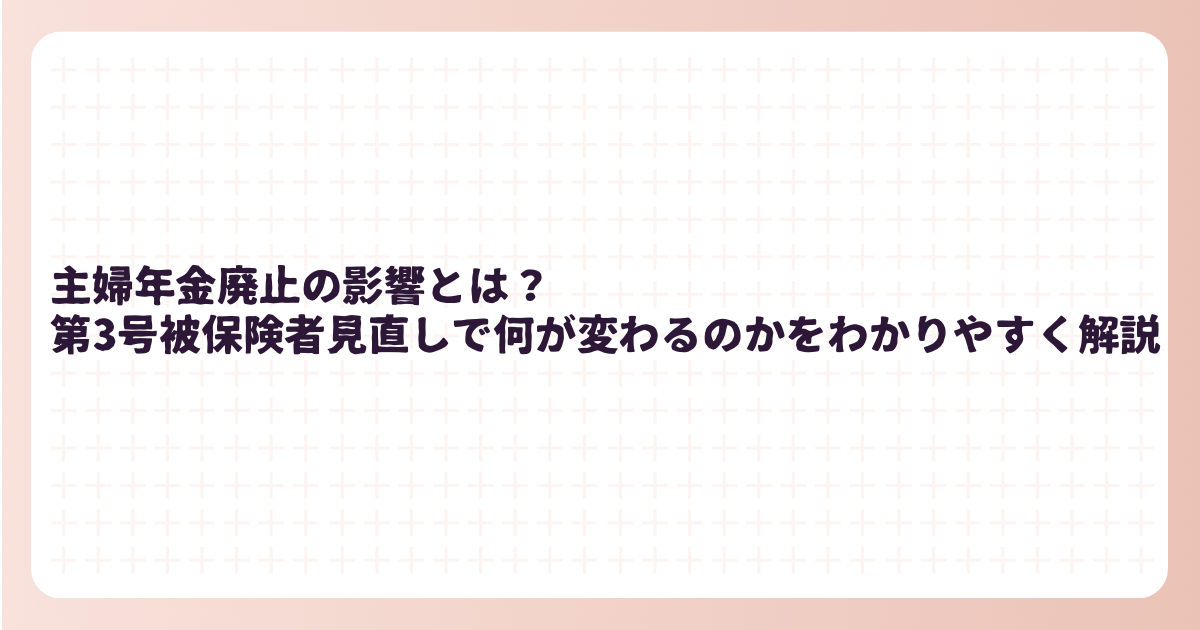 主婦年金廃止の影響は家計負担の増加と老後設計の見直しにつながるものでした。