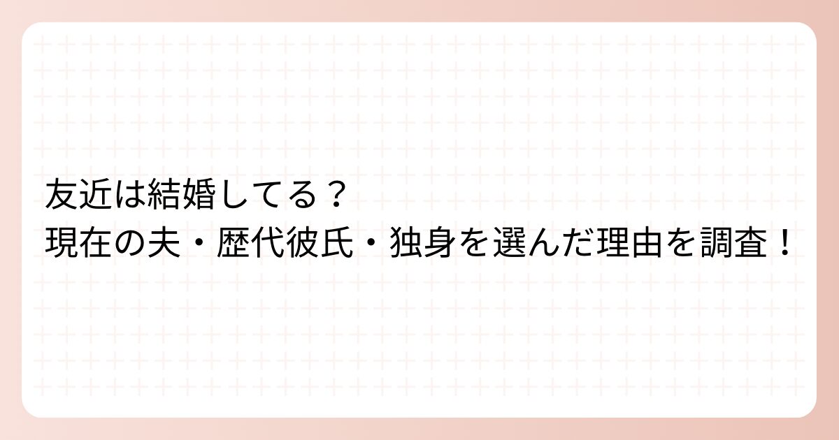 友近さんの歴代彼氏については、なだぎ武さんとの長期交際や一般男性との熱愛など、いくつかの報道がありましたが、結婚には至らなかったようです。