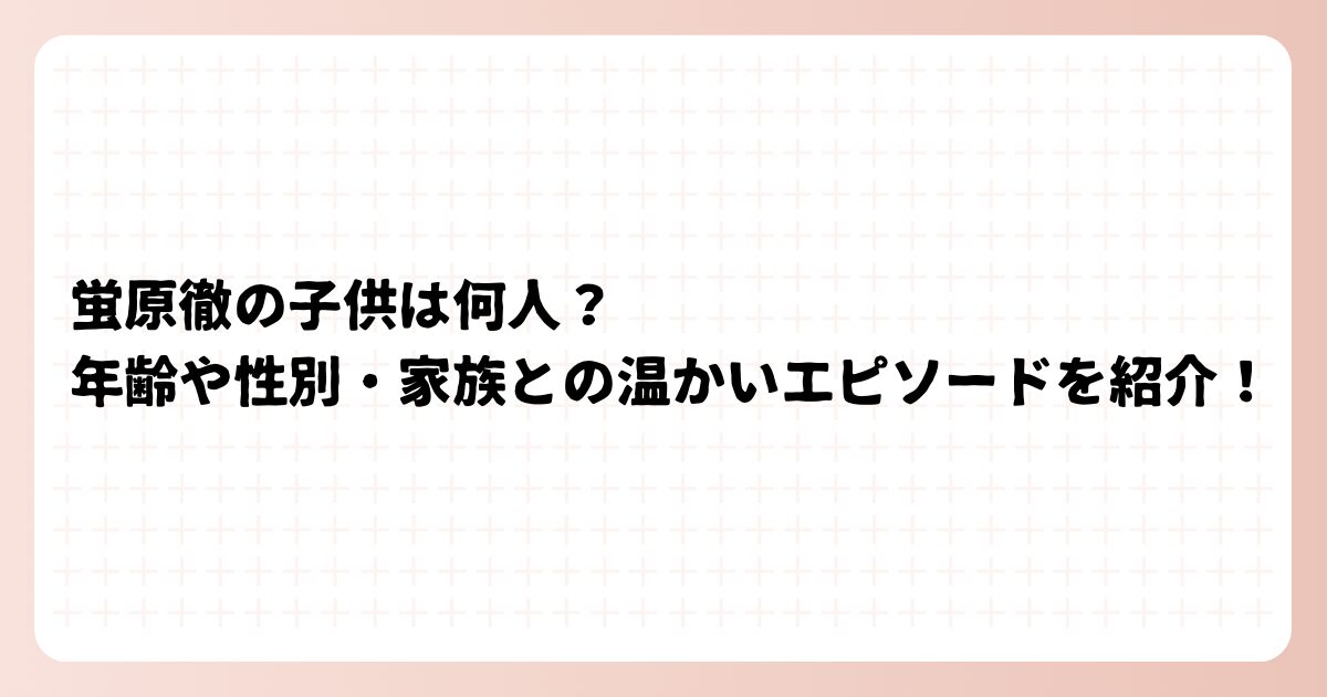 お子さんたちの名前や通われている学校など、詳細な個人情報は公表されておらず、蛍原徹さんが家族のプライベートを大切にされていることがわかります。